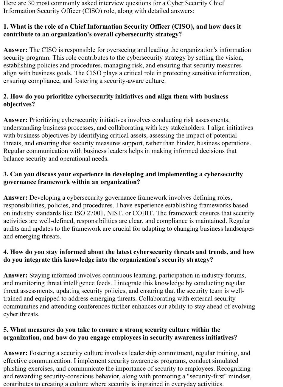 30 General Cybersecurity Interview Q&A for CISO Positions