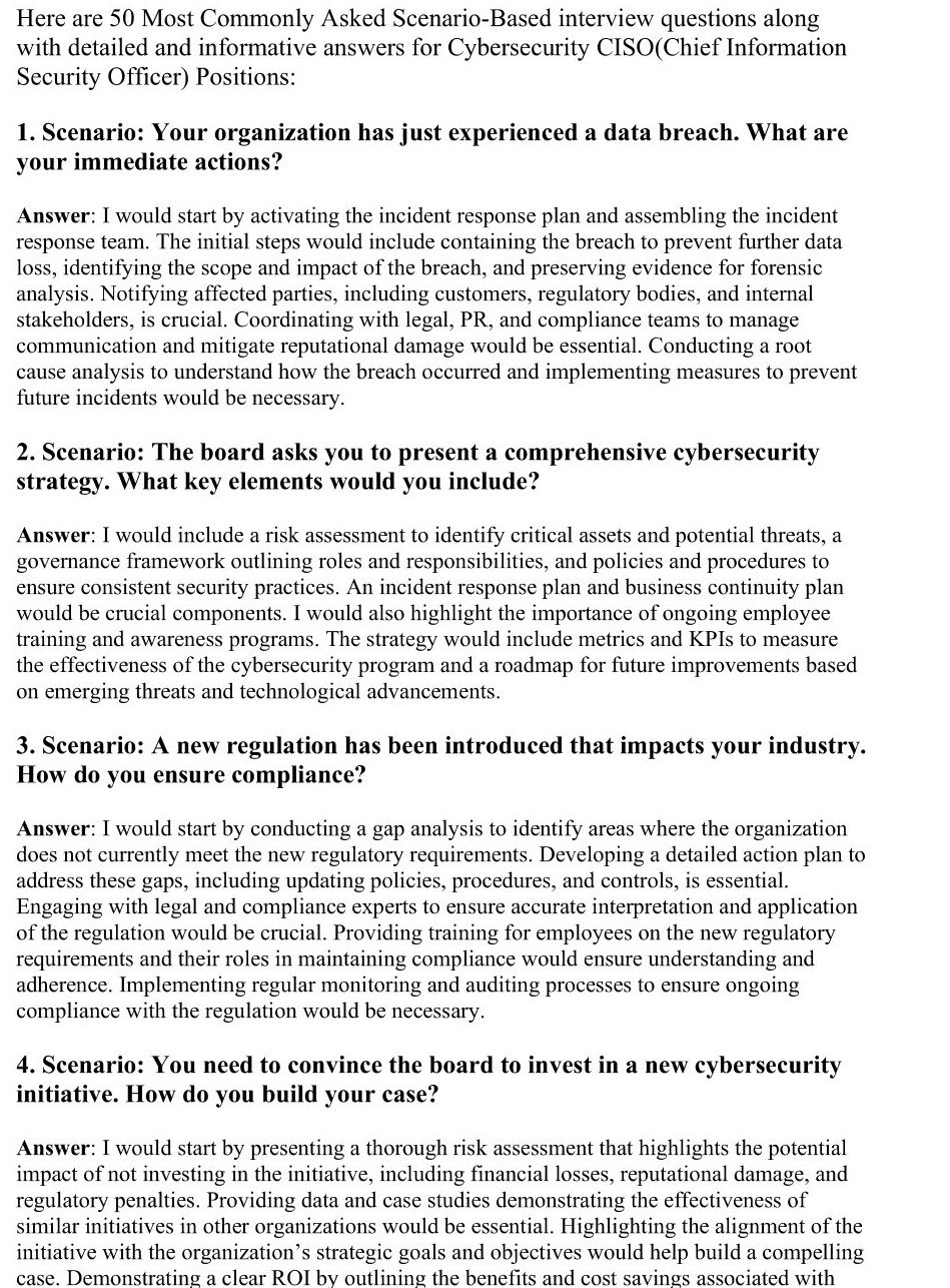 50 Scenario-Based Interview Q&A for CISO Positions