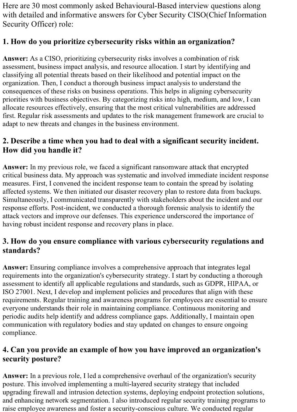 30 Behavioral-Based Interview Q&A for CISO Positions