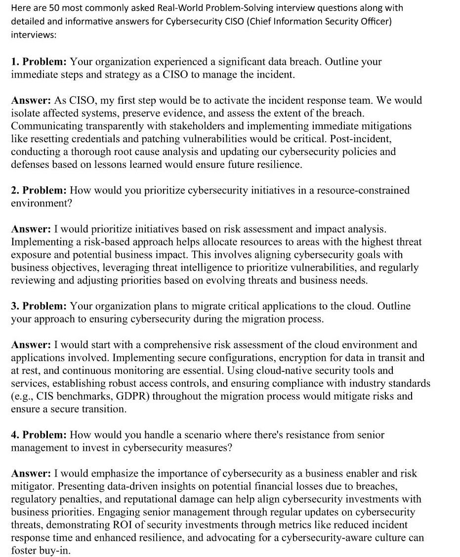 50 Real-World Problem-Solving Interview Q&A for CISO Positions