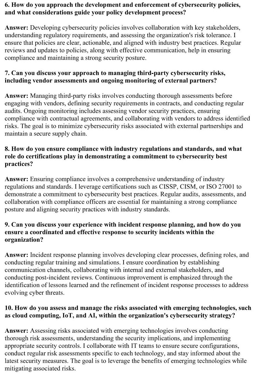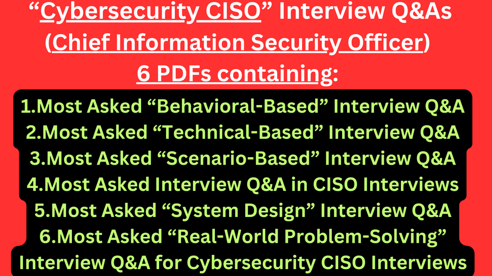 Are you ready to become a Chief Information Security Officer (CISO) and lead the cybersecurity efforts of top organizations? Our meticulously crafted collection of 6 PDF guides is your gateway to success. Designed by industry experts, these guides cover the most asked and highly valued interview questions, providing detailed and informative answers that will set you apart from the competition. You people will get a collection of 6 PDFs containing Various types of Most Asked Interview Q&A like Most Asked Technical-Based Interview Q&A, Most Asked Behavioral-Based Interview Q&A, Most Asked Scenario-Based Interview Q&A, Most Asked Real-World Problem-Solving Interview Q&A, Most Asked System Design Interview Q&A and Most Asked Interview Q&A in Cybersecurity Chief Information Security Officer(CISO) Interviews. You people can see details and preview of each PDF in the below section: