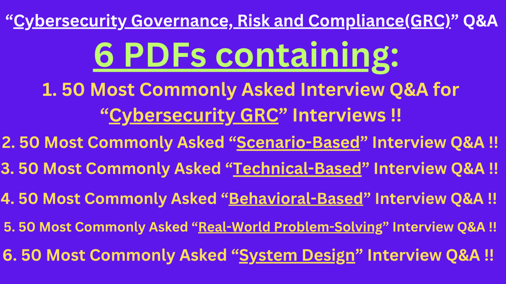 6 PDFs containing ALL Types of Most Asked Interview Q&A (Scenario-Based, Technical-Based, Behavioral-Based, System Design, Real-World Problem-Solving and Generally Most Asked ) Required for your "Cybersecurity GRC" Interviews !!