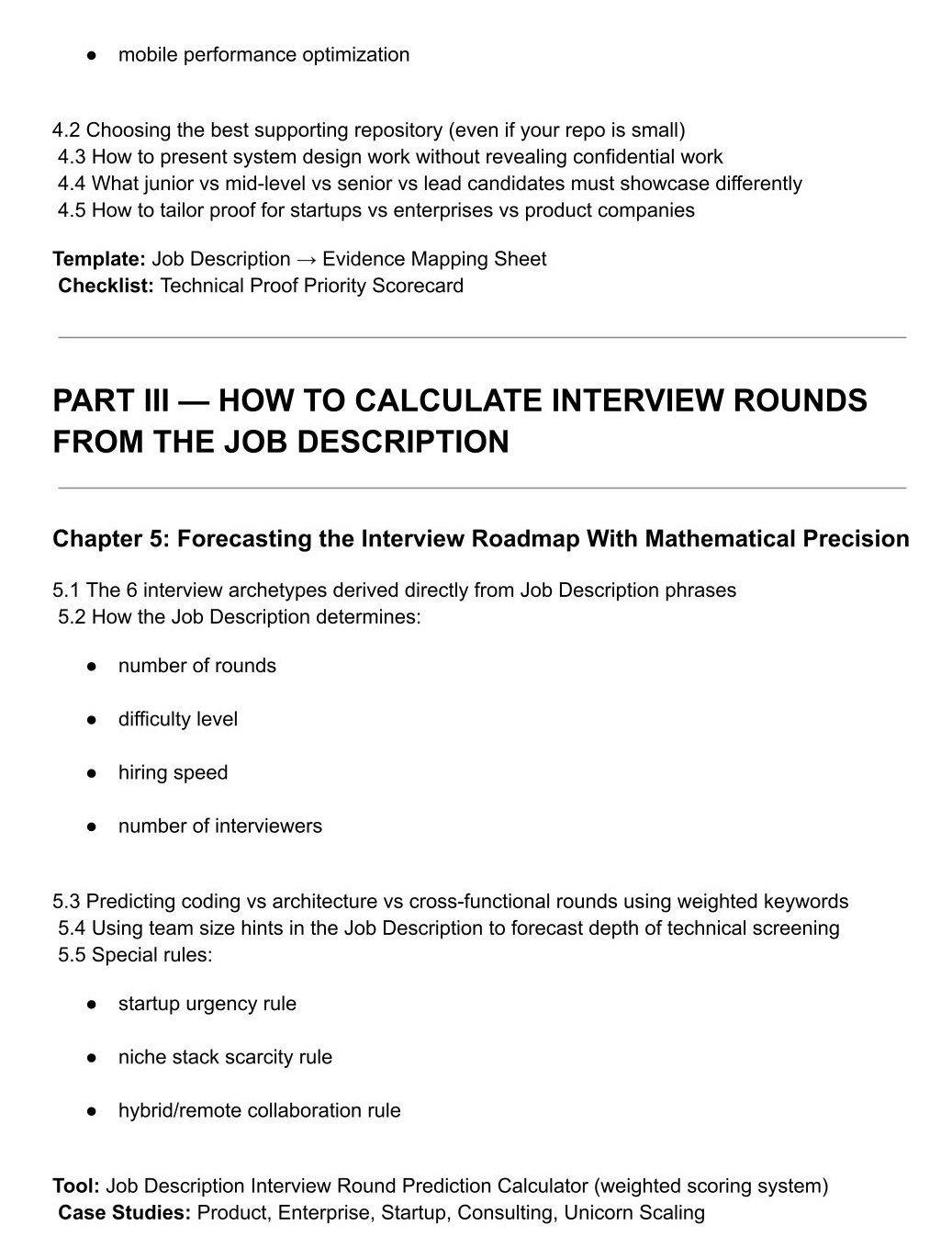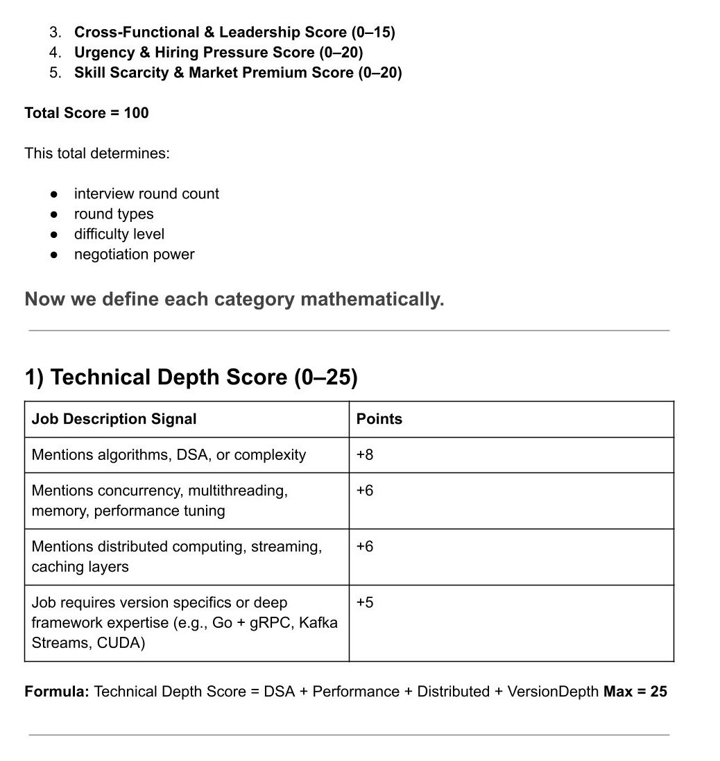 This chapter reveals how round count, difficulty, interviewer type, and timing can be predicted directly from the JD using a scoring model.