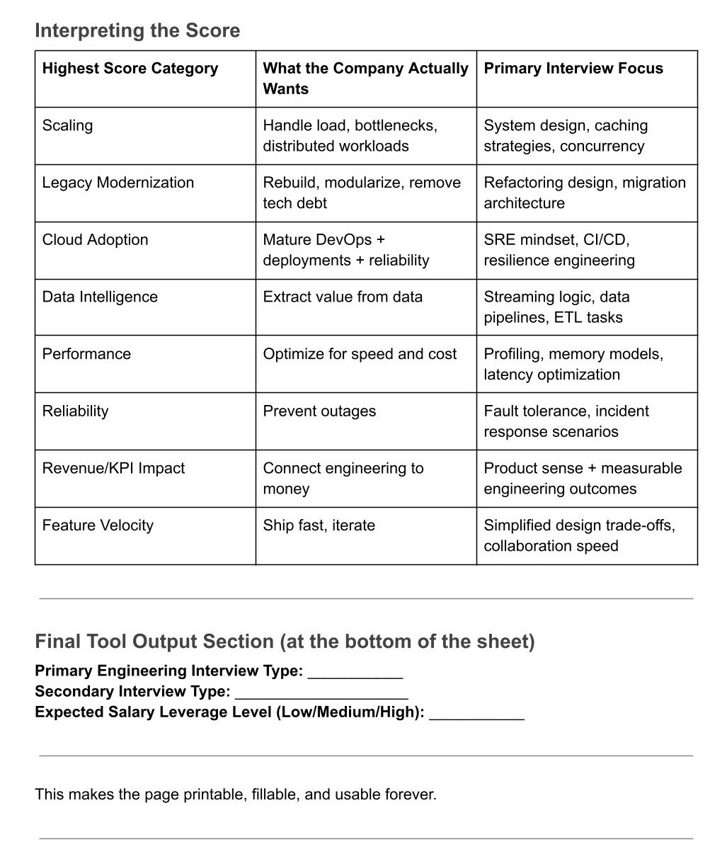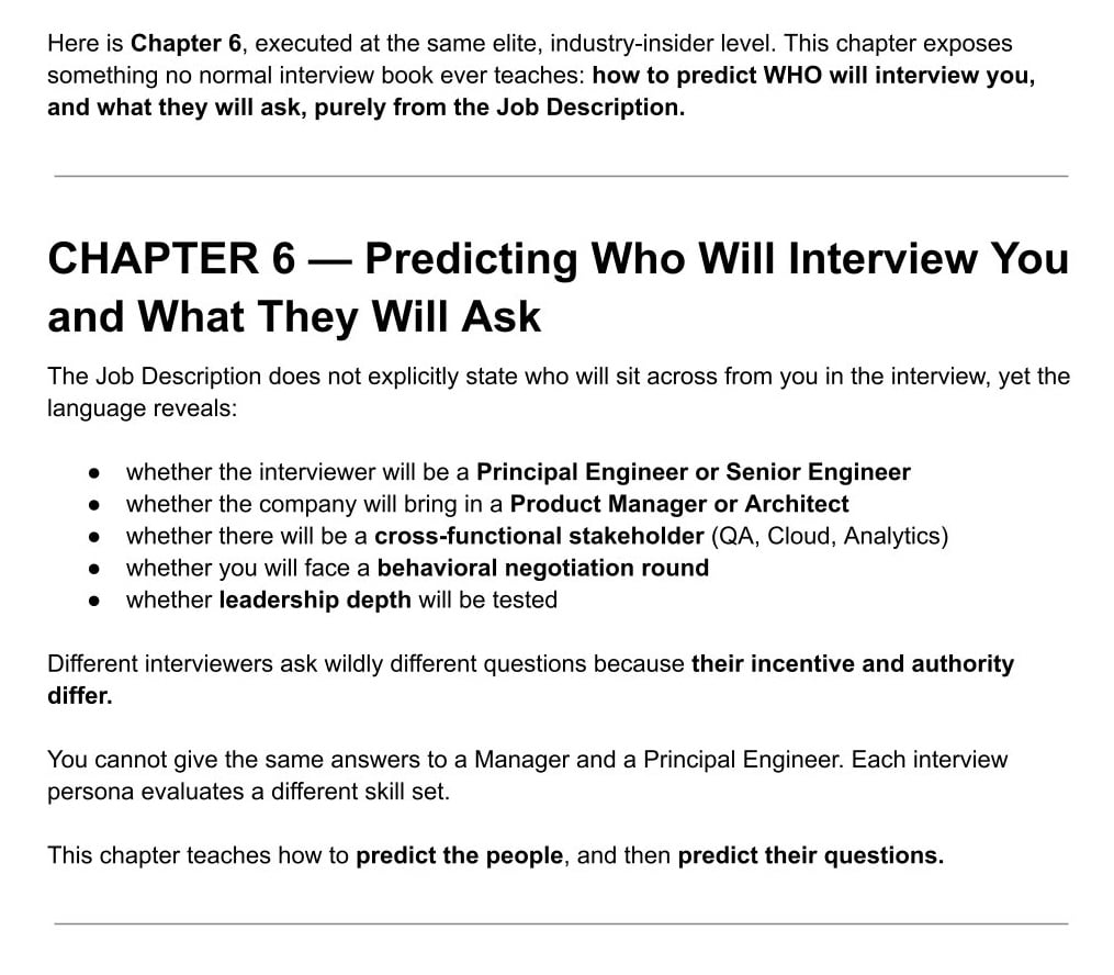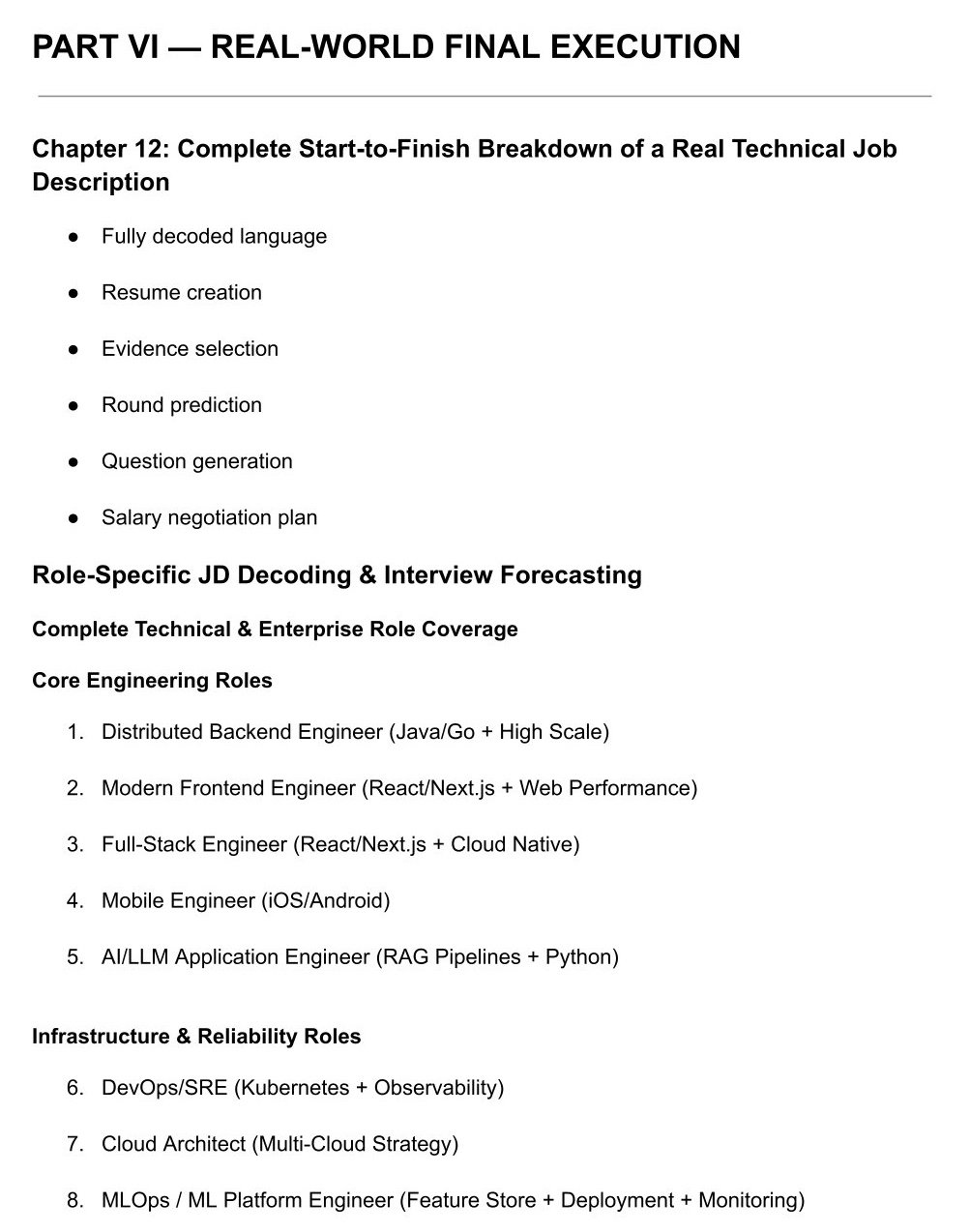 The Complete Interview Decoding System for Engineers. Turn Any "Job Description" Into a Resume, Question Bank, Round Forecast & Salary Leverage.This is not an interview-prep book. This is an intelligence system that extracts everything you need from a single "Job Description": ATS resume keywords, Outcome-based bullets, System design domains, Coding Q&A topics, Behavioral ROI stories and Salary negotiation leverage. Stop studying randomly. Stop guessing. Your "Job Description" already contains the answers.