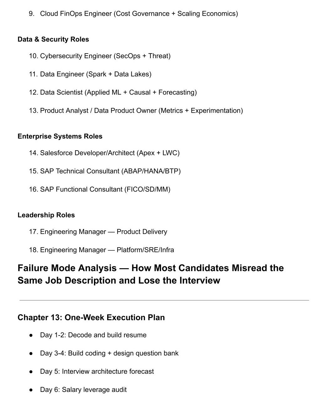 This preview the structure of a 7-day plan that turns any JD into a fully prepared interview roadmap, including resume, Q&A bank, architecture plan, and salary scripts.