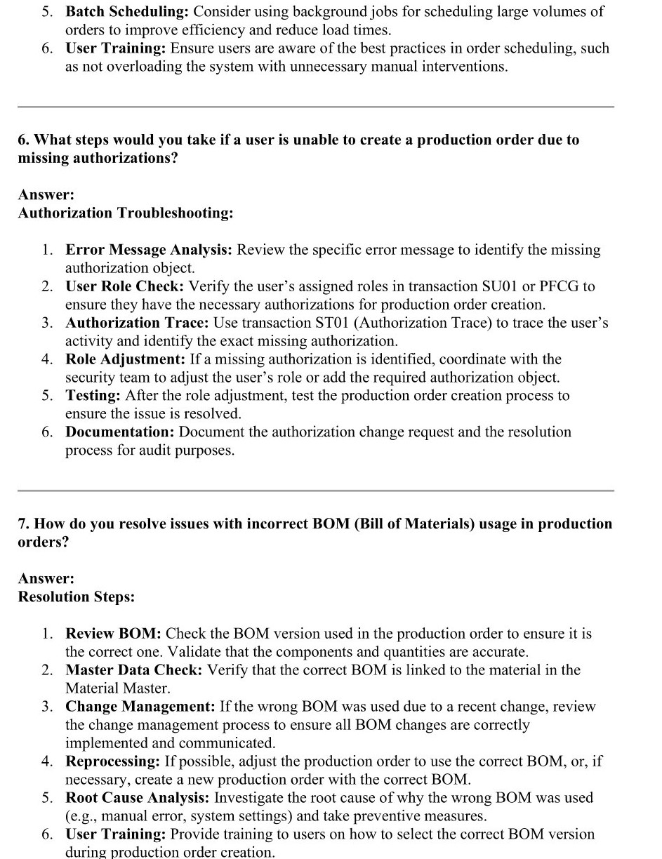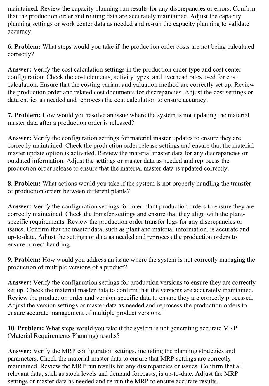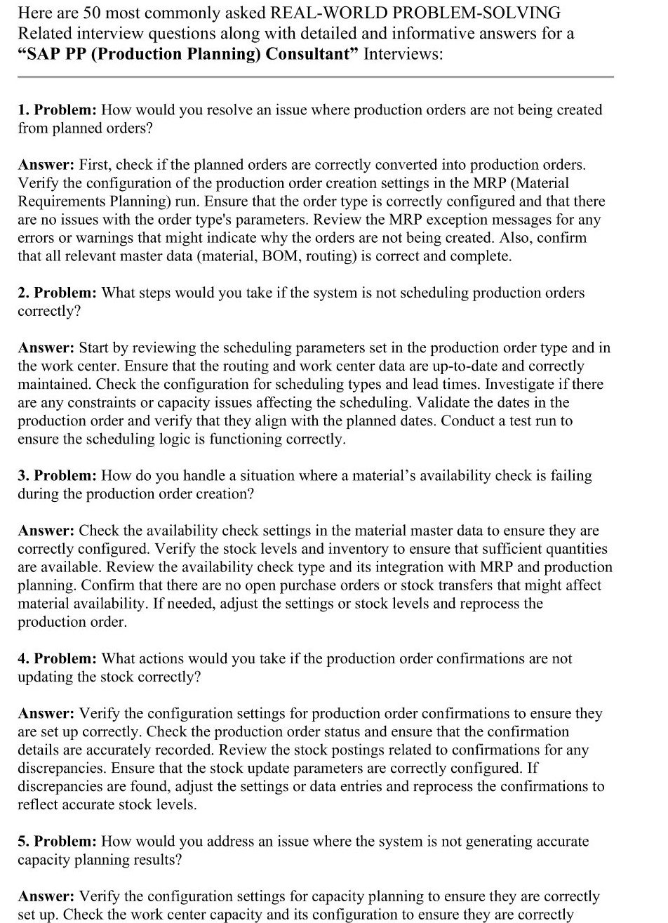 - Here is the preview of First 2 Pages of PDF containing "50 Most Commonly Asked REAL-WORLD PROBLEM-SOLVING Related Interview Q&A" in your SAP PP (Production Planning) Consultant Interviews: