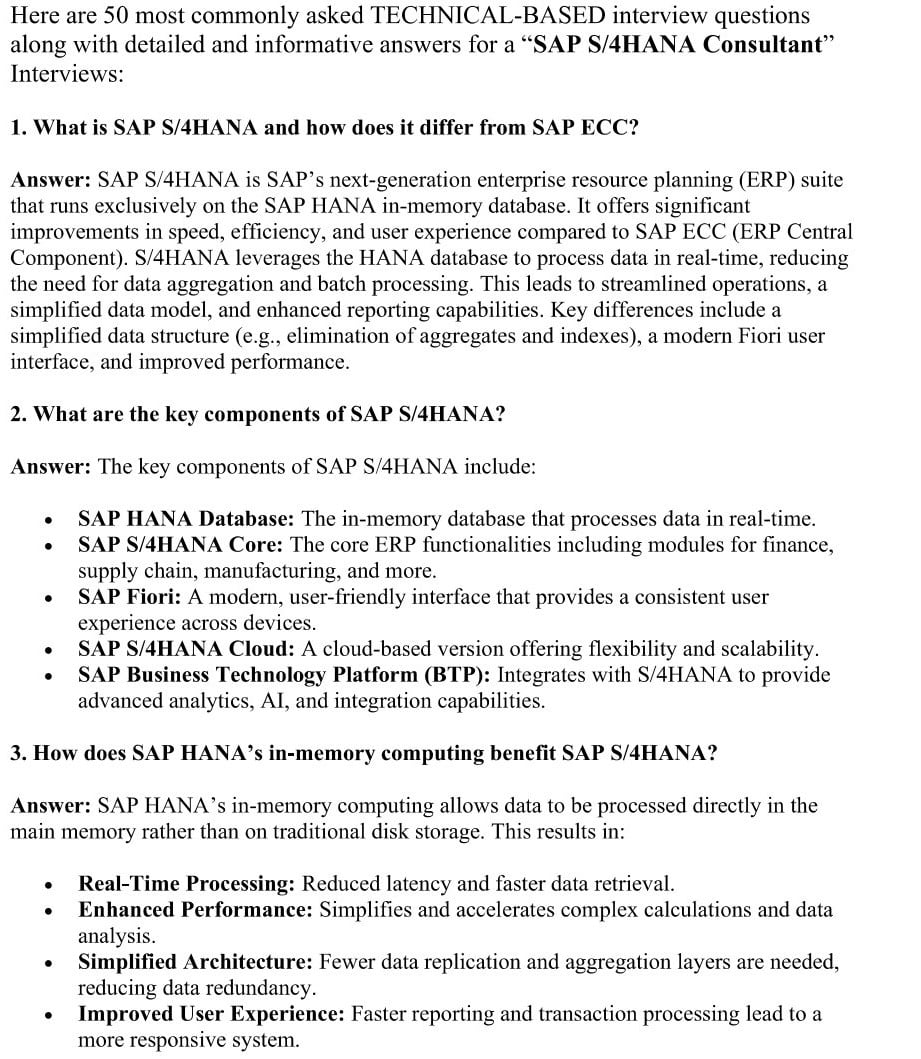 - Here is the preview of first 3 Pages of PDF containing "50 Most Commonly Asked TECHNICAL-BASED Interview Q&A" in your SAP S/4HANA Consultant Interviews: