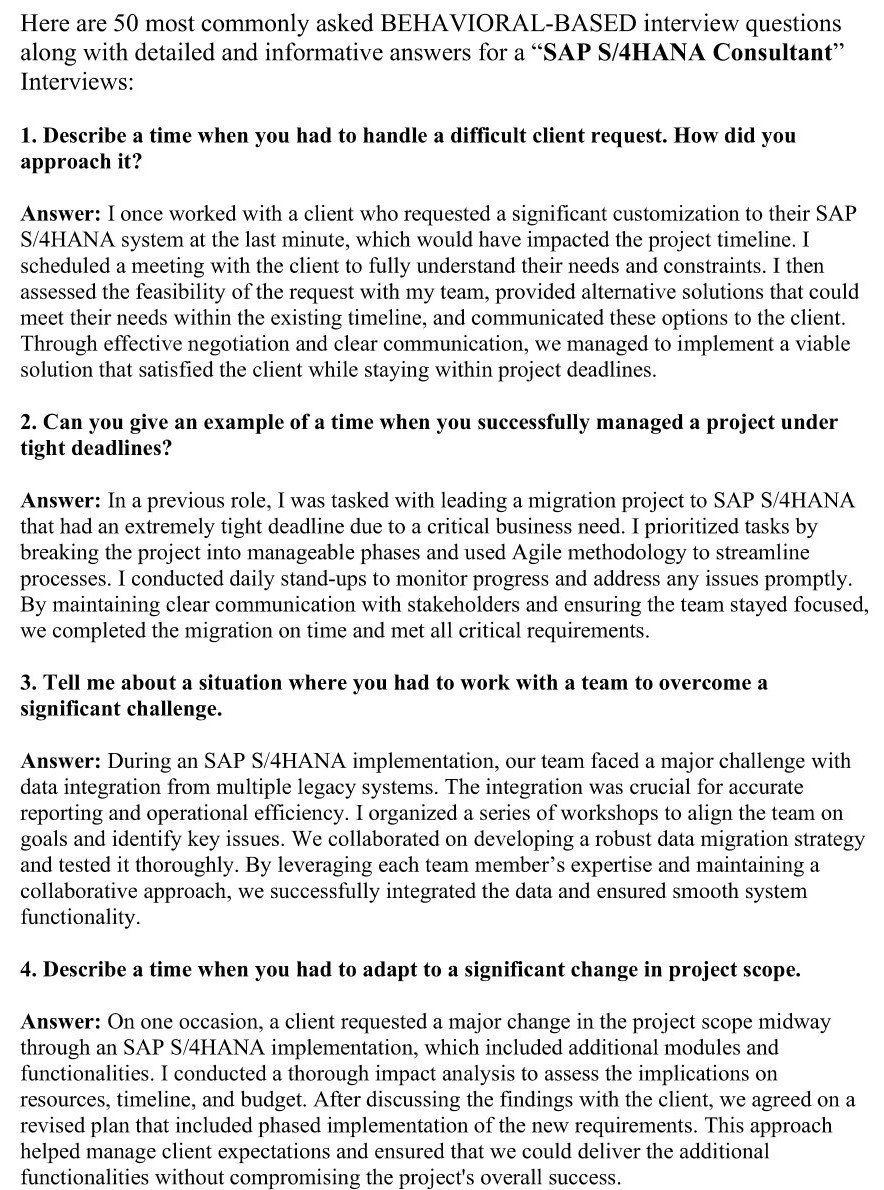- Here is the preview of first 3 Pages of PDF containing "50 Most Commonly Asked BEHAVIORAL-BASED Interview Q&A" in your SAP S/4HANA Consultant Interviews: