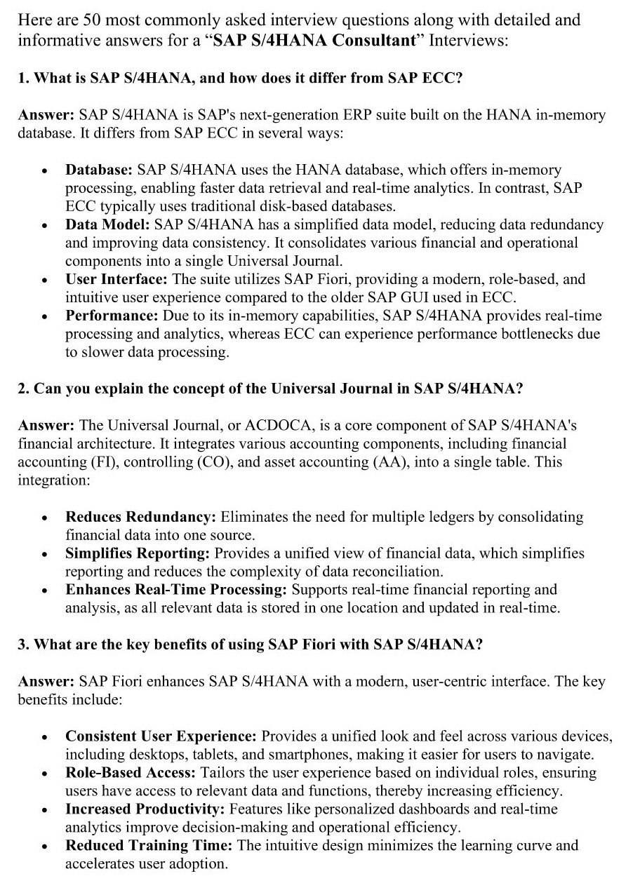 - Here is the preview of first 4 Pages of PDF containing "50 Most Commonly Asked Interview Q&A" in your SAP S/4HANA Consultant Interviews: