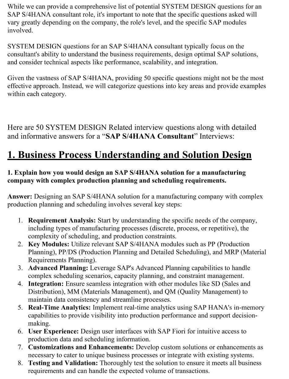 - Here is the preview of some of the Pages of PDF containing "50 SYSTEM DESIGN Related Interview Q&A" for your SAP S/4HANA Consultant Interviews: