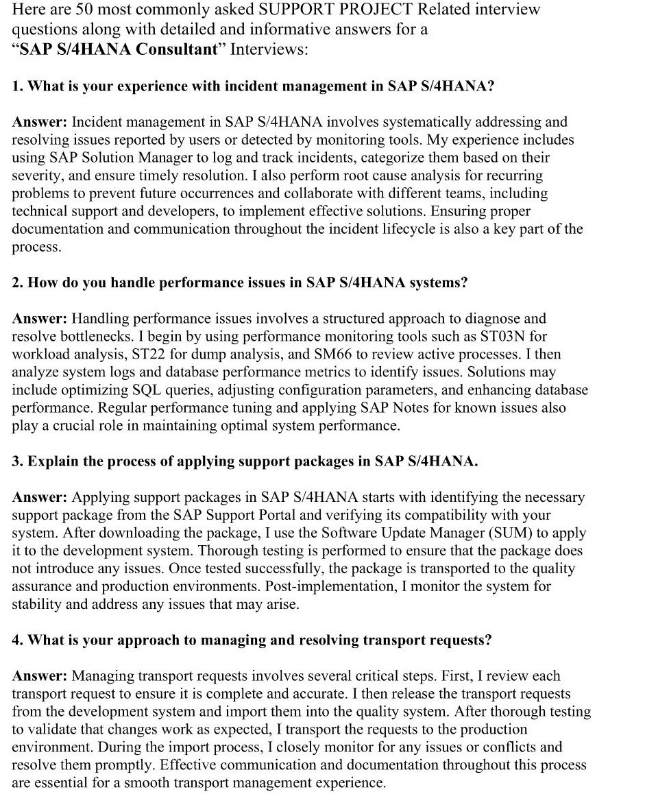 - Here is the preview of first 3 Pages of PDF containing "50 Most Commonly Asked SUPPORT PROJECT Related Interview Q&A" in your SAP S/4HANA Consultant Interviews: