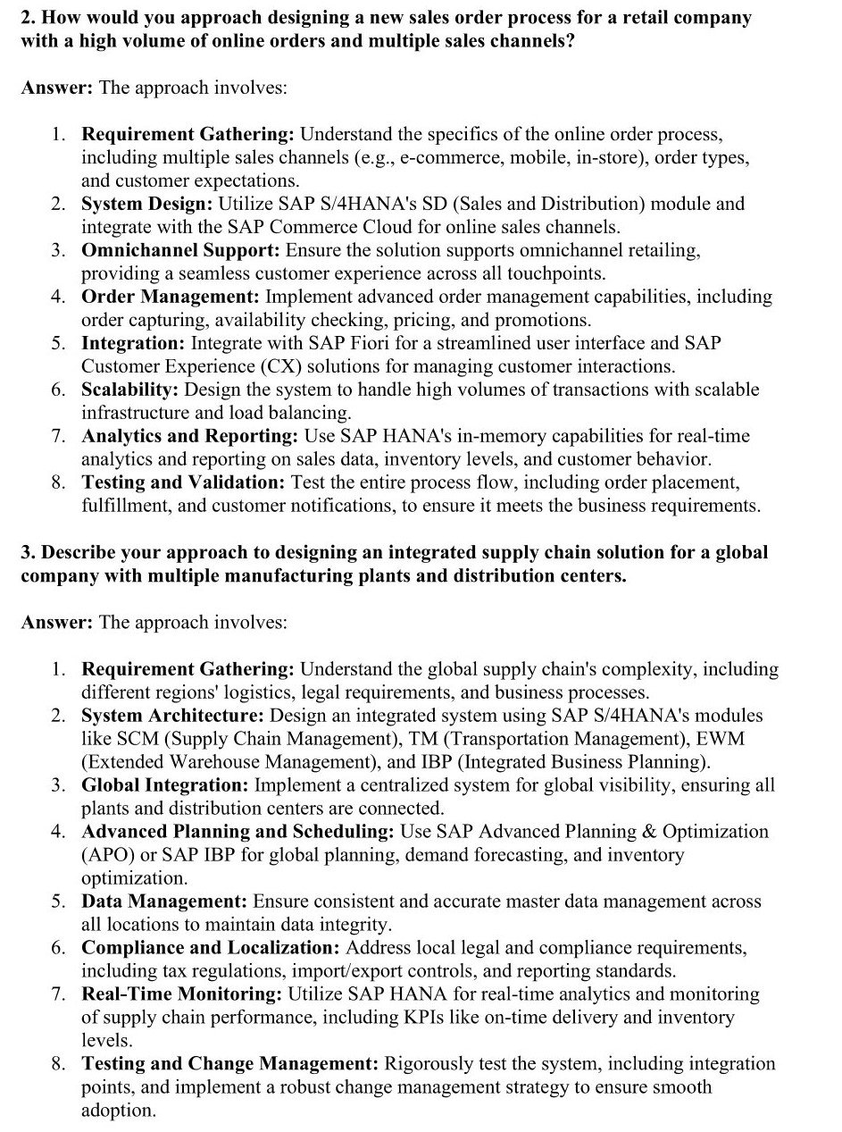 - it's important to note that the specific SYSTEM DESIGN questions asked will vary greatly depending on the company, the role's level, and the specific SAP modules involved. SYSTEM DESIGN questions for an SAP S/4HANA consultant typically focus on the consultant's ability to understand the business requirements, design optimal SAP solutions, and consider technical aspects like performance, scalability, and integration. Given the vastness of SAP S/4HANA, providing 50 specific questions might not be the most effective approach. Instead, we will categorize questions into key areas and provide examples within each category.
