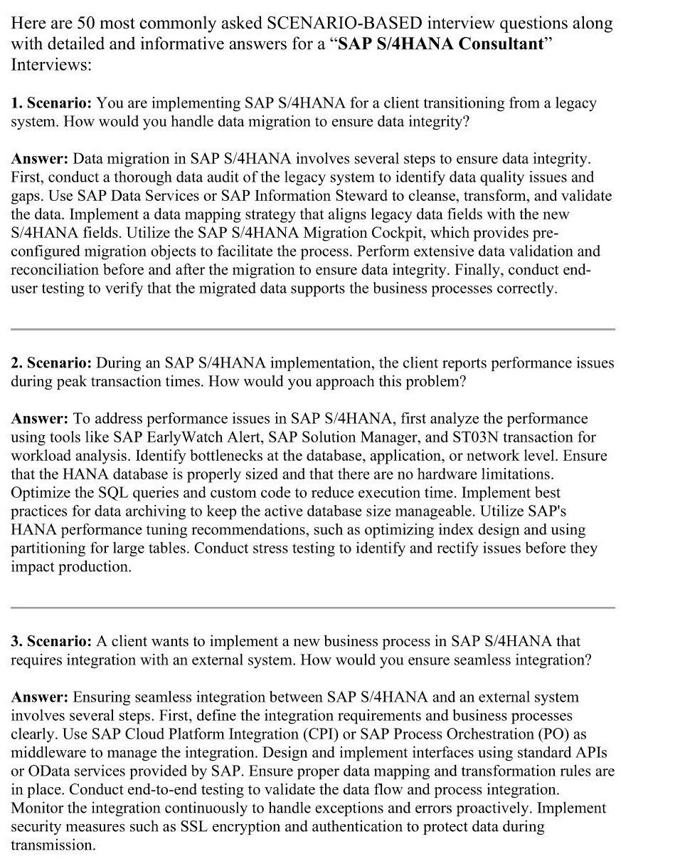 - Here is the preview of first 4 Pages of PDF containing "50 Most Commonly Asked SCENARIO-BASED Interview Q&A" in your SAP S/4HANA Consultant Interviews: