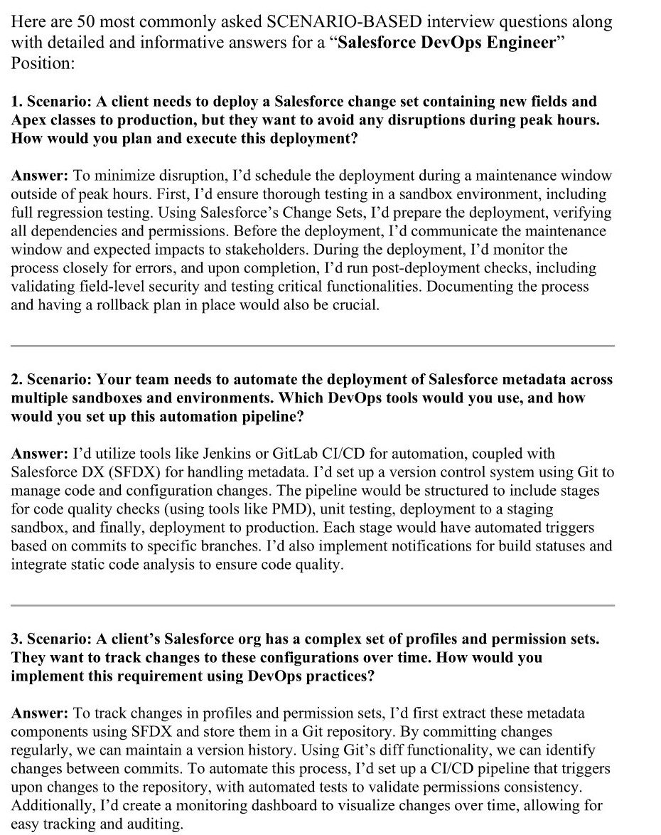 - Here is the preview of first 3 Pages of PDF containing "50 Most Commonly Asked SCENARIO-BASED Interview Q&A" in your Salesforce DevOps Engineer Interviews: