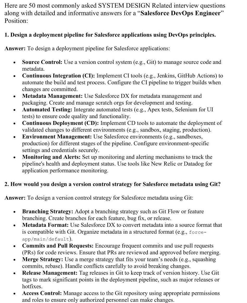 - Here is the preview of first 3 Pages of PDF containing "50 Most Commonly Asked Interview Q&A" in your Salesforce DevOps Engineer Interviews:
