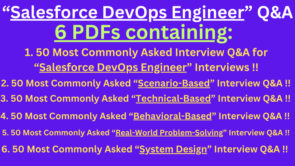 6 PDFs containing ALL Types of Most Asked Interview Q&A (Scenario-Based, Technical-Based, Behavioral-Based, System Design, Real-World Problem-Solving and Generally Most Asked ) Required for your "Salesforce DevOps Engineer" Interviews !!