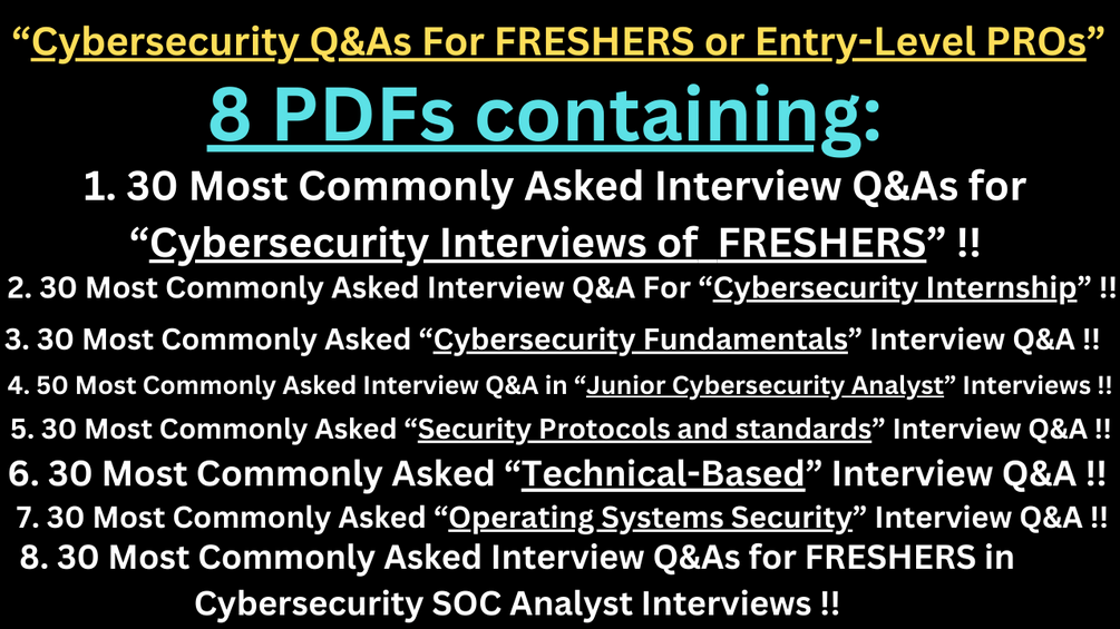 8 PDFs to Unlock Your Cybersecurity Career as a FRESHER or ENTRY-LEVEL PRO! 8 PDFs Containing Most Crucial Interview Questions along with detailed and informative answers for excelling in CYBERSECURITY interviews of FRESHERS!